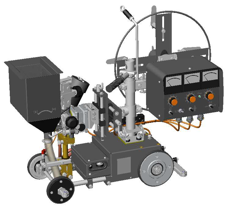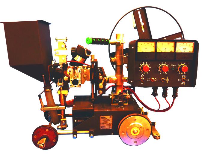 Трактор сварочный ТСФ-101 с плавным регулированием скорости подачи электродной проволоки и скорости сварки, предназначен для автоматической электродуговой сварки однопроходных и многопроходных соединений внахлестку, угловых, тавровых, а также стыковых соединений с разделкой и без разделки кромок.