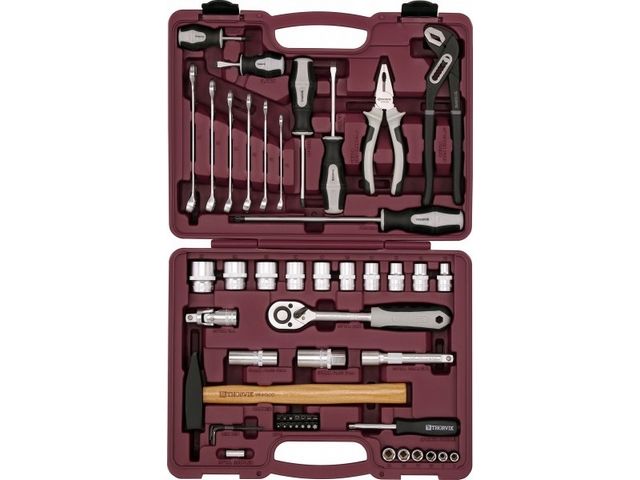 Набор инструментов универсальный 1/4" и 1/2"DR, 56 предметов, UTS0056, Thorvik, выполнен из высокопрочной хромованадиевой стали.